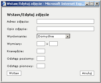 | Odstęp poziomy | Odstęp poziomy, pomocne przy zawijaniu tesktu wokół zdjęcia. |