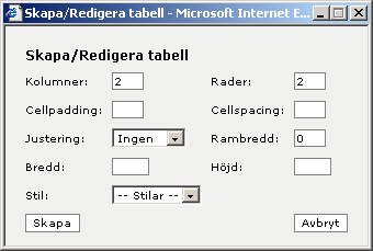 Skapa tabell-knappen öppnar ett nytt fönster, med hjälp av detta fönster kan du skapa tabeller.